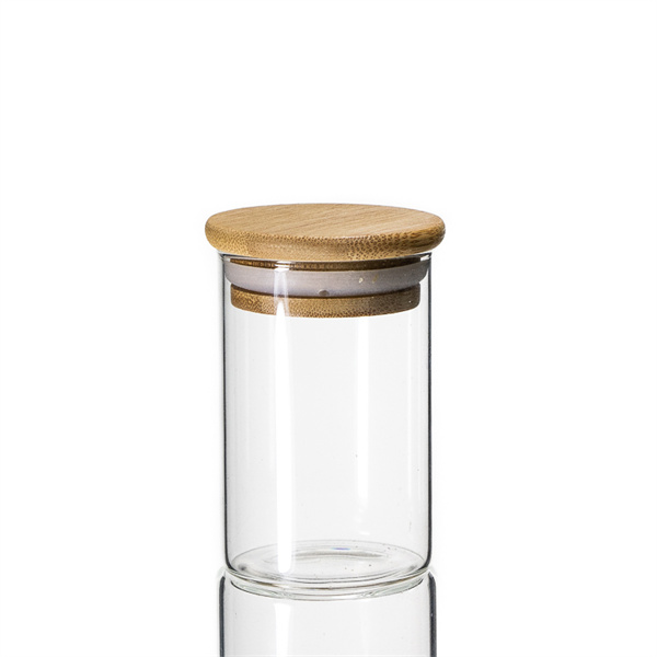 Product Description 450ml high borosilicate glass jar with bamboo lid Item no. JSHB002 Top diameter 65mm bottom dia.: 65mm height 150mm